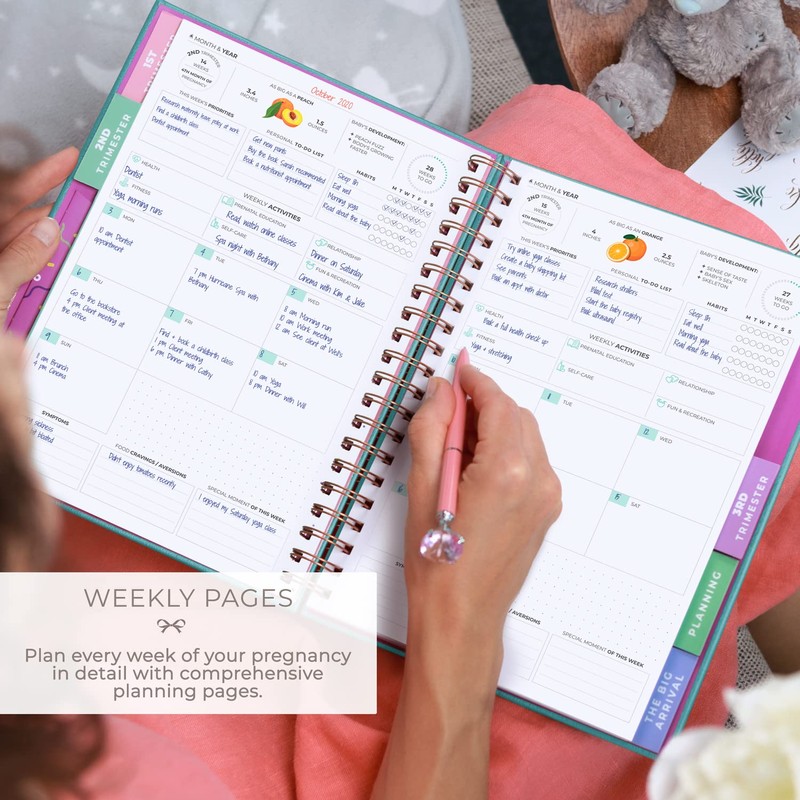 - 130 PAGES OF PROMPTS, QUESTIONS, CHECKLISTS & MORE: This pregnancy tracking journal has 3-trimester planning sections with detailed to-do checklists, monthly calendars, doctor visit forms, weekly plan & review pages, and trimester review spreads.