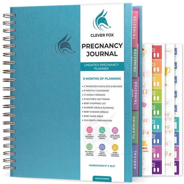 Clever Fox Pregnancy Journal & Memory Book - Pregnancy Planner & Notebook for Expecting Moms – Baby Keepsake, First Time Moms Gift (Aquamarine)