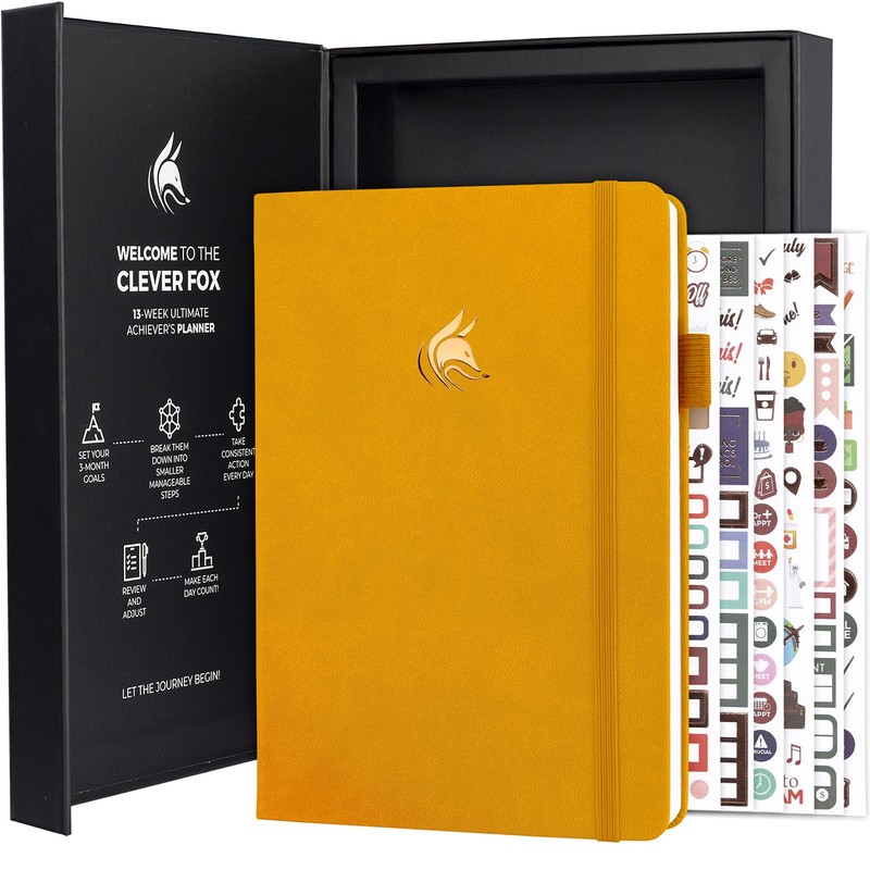 Clever Fox Ultimate Achiever’s Goal Planner - Focus & Productivity 90 Day Journal. Undated Daily Weekly Monthly Planner Organizer & Hourly Schedule Notebook - Hardcover, A5 Size, Amber Yellow