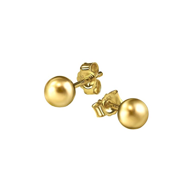 CLEVER SCHMUCK Golden Pair of Small Women's Stud Earrings with Ball Diameter 4 mm Shiny 333 Gold 8 Carat, Glossy, No Gemstone