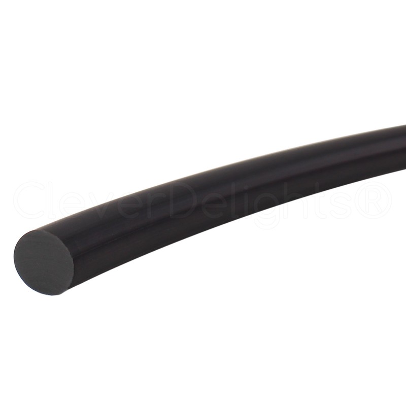 CleverDelights Solid Rubber Cord - 3/8" Diameter - 5 Feet - Buna 70 Durometer - Black - .375" Round