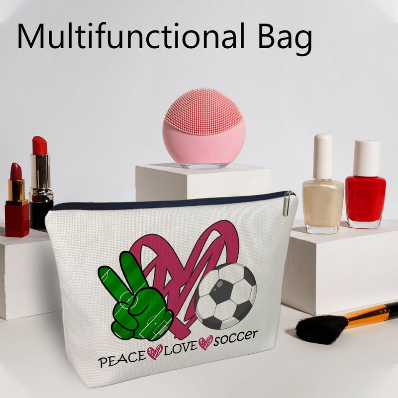 • Charming Design: This makeup bag, a perfect makeup organizer and travel essential, features the phrase "Peace & Love & Soccer," making it an ideal gift for Soccer lovers, women, moms, sisters, friends, and daughters, perfect for birthdays or Christmas