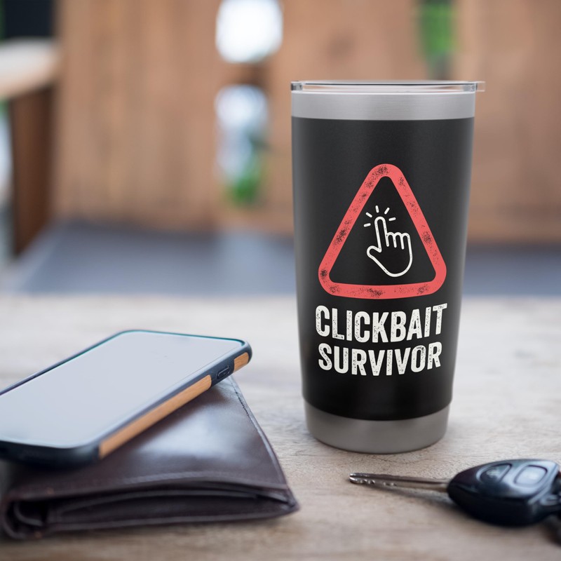 - This and bold and vibrant design features a click icon paired with the cheeky phrase: Clickbait Survivor, perfect blending cybersecurity with hacking humor.