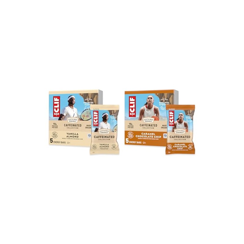 - CARAMEL CHOCOLATE CHIP AND VANILLA ALMOND FLAVORS: Two 5-pack boxes (10 total bars) of CLIF BAR Caffeinated Collection Caramel Chocolate Chip and Vanilla Almond Energy Bars to add a kickstart of caffeine to your workout (packaging may vary)