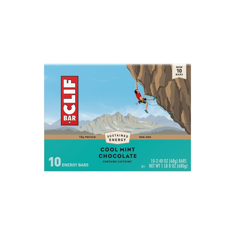 - COOL MINT, RICH CHOCOLATE: Includes one 10-pack box of Cool Mint Chocolate energy bars made with refreshing mint, sustainably sourced chocolate, and a boost of caffeine (packaging may vary)