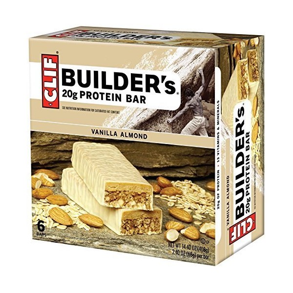 Clif Builder's Vanilla Almond Protein Bars, 1 Box with 6 Bars Inside by Clif