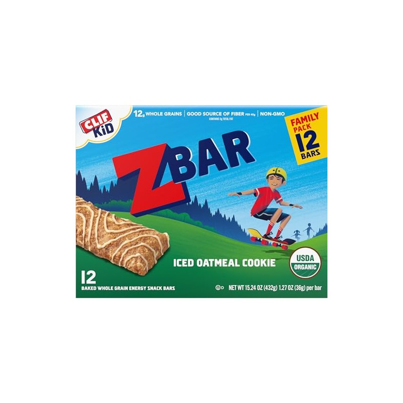 Clif Kid ZBar CLIF Kid Zbar - Iced Oatmeal Cookie - Soft Baked Whole Grain Snack Bars - USDA Organic - Non-GMO - Plant-Based - 1.27 oz. (12 Pack)