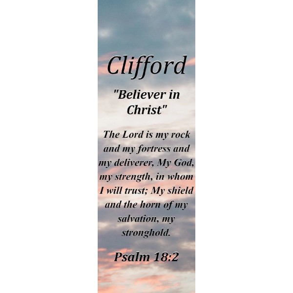 Clifford "Believer in Christ" Keepsake Name Meaning Bookmark w/ Verse and Tassel