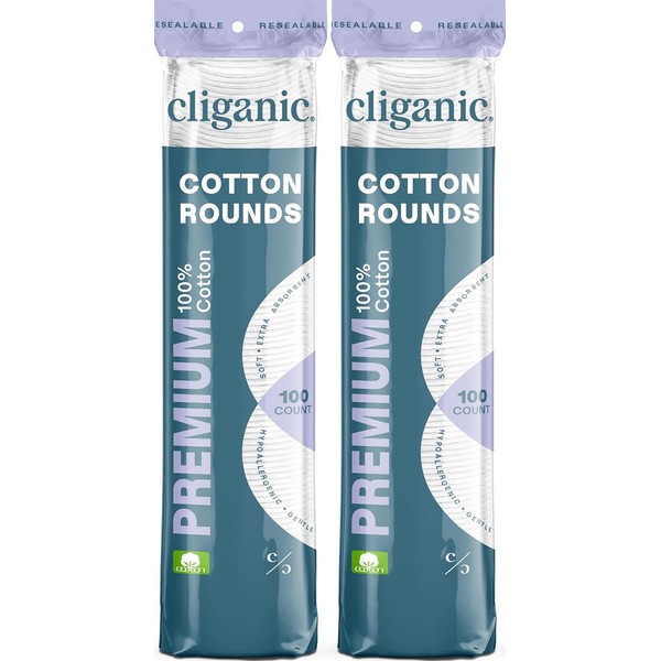 Cliganic Cliganic Premium Cotton Rounds for Face (200 Count) | Makeup Remover Pads, Hypoallergenic, Lint-Free | 100% Pure Cotton (Packaging May Vary)