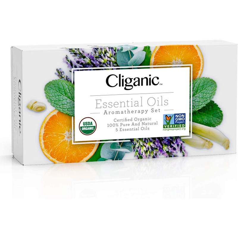 Cliganic Organic Aromatherapy Essential Oils Holiday Gift Set (Top 5), Stocking Stuffer - 100% Pure Natural - Peppermint, Lavender, Eucalyptus, Lemongrass & Orange