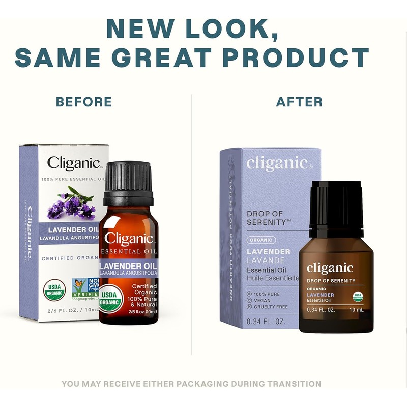 Cliganic USDA Organic Lavender Essential Oil - 100% Pure Natural Undiluted, for Aromatherapy Diffuser | Non-GMO Verified (Packaging May Vary)