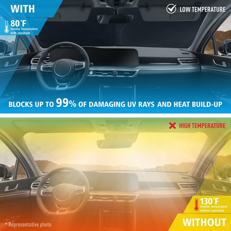 - ✅ Keep Your Interior Cool: This windshield cover efficiently reflects sunlight to reduce heat and protect your upholstery, preventing fading, cracking, and sun damage.