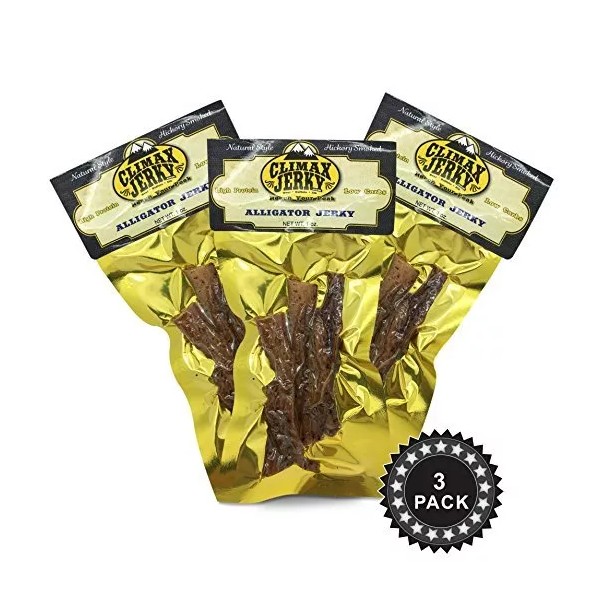 - REAL ALLIGATOR JERKY: Climax Jerky brings you the real deal in alligator jerky. Made 100% from solid strips of alligator, our product stands out from most market products. Try the tastiest jerky from real alligator. You will not buy another jerky ever again.
