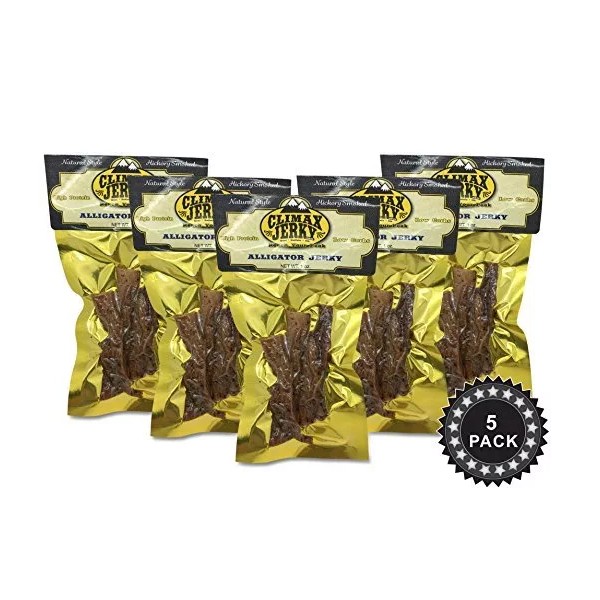- REAL ALLIGATOR JERKY: Climax Jerky brings you the real deal in alligator jerky. Made 100% from solid strips of alligator, our product stands out from most market products. Try the tastiest jerky from real alligator. You will not buy another jerky ever again.