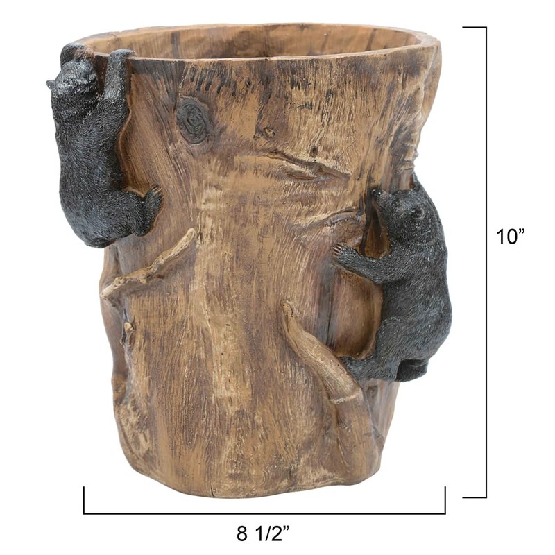 BLACK FOREST DECOR Climbing Black Bears Waste Basket – Rustic Bathroom Trash Can – 8.5" x 10"