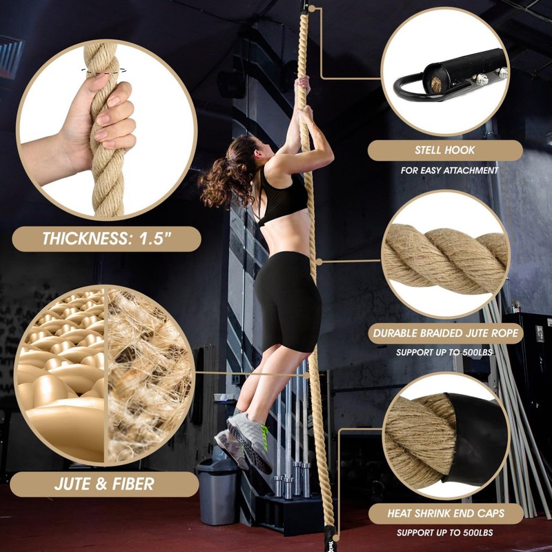 - STURDY BRAIDED HEMP ROPE: Yes4All Gym Climbing Rope is constructed of heavy-duty sisal rope. This climbing rope provides a good feel with easy grip and supports up to 500 pounds when mounted correctly