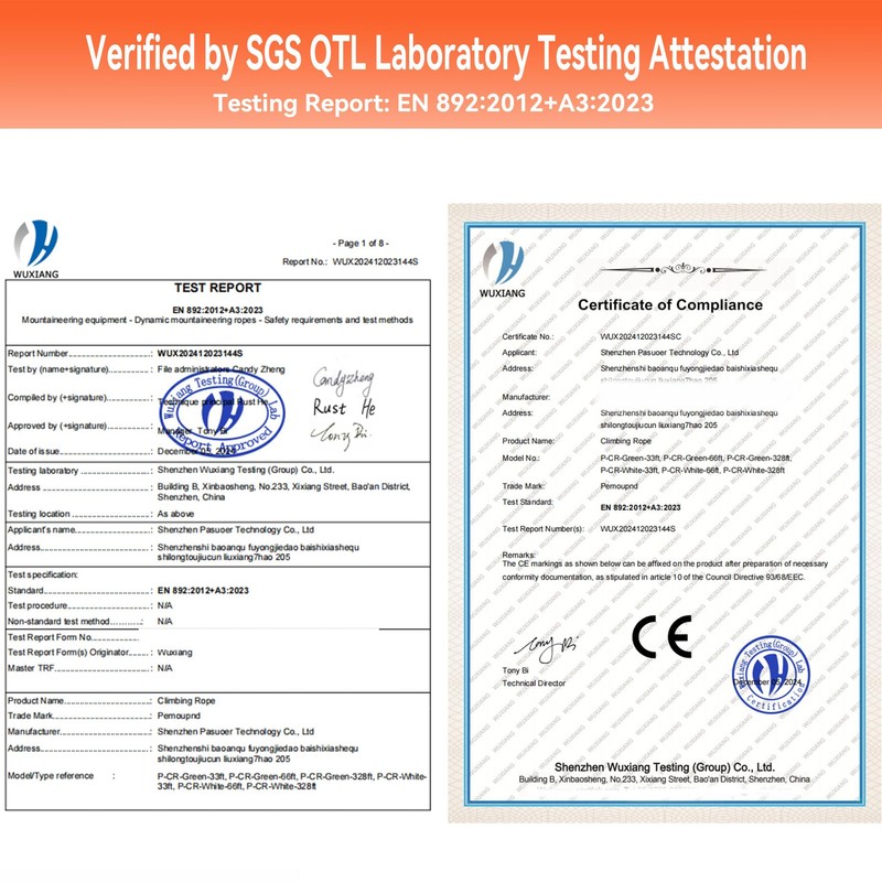 - High standard certification: This product has passed the international standard EN 892:2012+A3:2023 certification and is strictly produced in accordance with international safety standards such as EN 892:2012+A3:2023/CE, ensuring that every rope reaches the top safety level in the industry