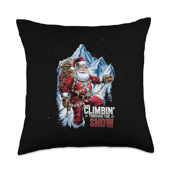 Climbing Santa Claus Christmas Mountain Snow Throw Pillow
