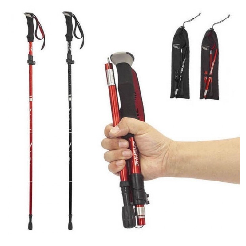 Climbing stick 4-stage foldable wrist fixation non-slip folding red