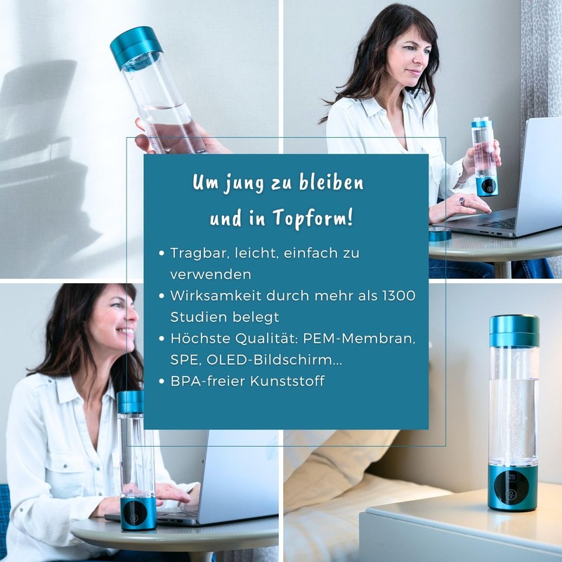 • Easy to use: one button, two 5 minute programs (for daily hydration, general well-being and light antioxidant support) and 10 minutes (recommended for people who want stronger antioxidant and anti-inflammatory effects, or for those who want to improve their athletic performance and recovery)