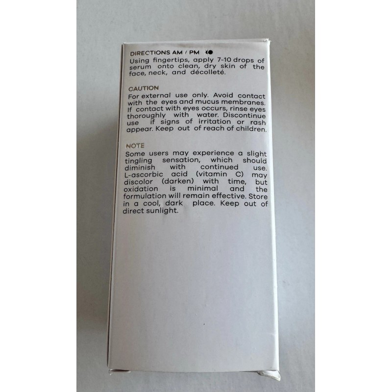- Active Ingredients: Ascorbic Acid, Tetrahexyldecyl Ascorbate, Glycerin, Ergothioneine, Tocopheryl Acetate