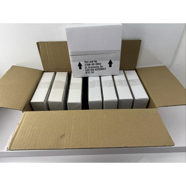 This product is a set of 400 empty makeup sample containers made of plastic. The jars come in eight cases of 50, and each jar has a lid. The jars are white and are branded with the Clinique logo.