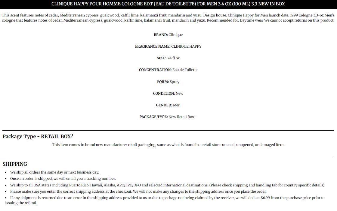 CLINIQUE HAPPY Pour Homme Cologne edt for Men 3.4 oz 3.3 New in Box~~