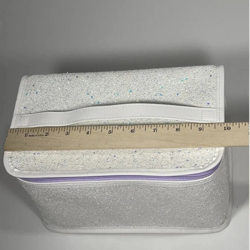 clinique make up bag white Silver glitter square Medium, Free Shipping