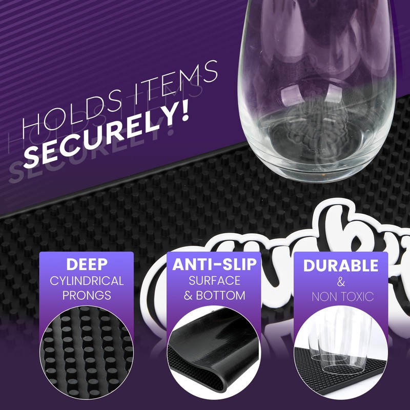 - Prevents Glasses from Tipping and Breaking - Unlike other bar mats which are made with flimsy rubber. Our mats cylindrical prongs provide exceptional stability to the drinks and cushions the glassware Plus, they maintain a strong grip without leaving any residue, keeping your bar essentials remain clean and looking great!