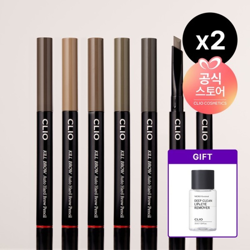 Clio CJ Exclusive Double Set Kill Brow Auto Hard Brow Pencil AD with Micro Professional Deep Clean Lip Eye Remover 31ml