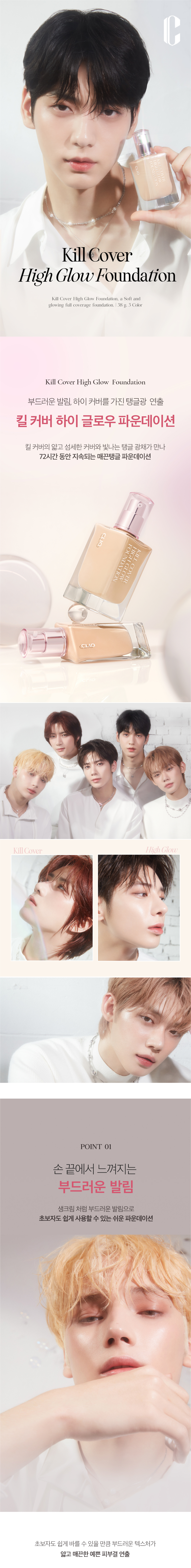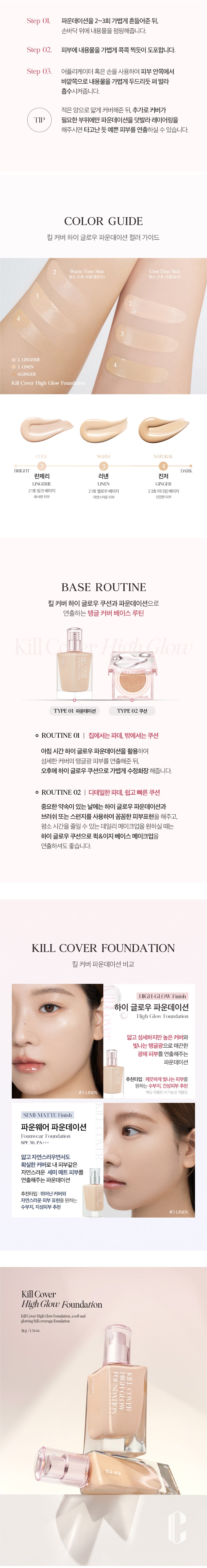 Glow Foundation with a soft spread and high coverage, creating a vibrant glow. A smooth and plump foundation that lasts for 72 hours, with the thin and delicate cover of Kill Cover meets the radiant glow. It is an easy foundation that even beginners can use easily with a smooth, creamy application like whipped cream. It creates a smooth and smooth texture that even beginners can easily apply to produce a beautiful skin texture. This foundation is applied thinly with a lively and luminous bounce that adheres comfortably to the skin texture. It shows a natural and delicate yet definite all-kill cover, as if born with a beautiful glow. The high coverage and smooth texture of the Kill Cover provide a radiant and long-lasting glow to the skin, without the worry of smudging your makeup. A 72-hour glow lasts on the body after completing the endurance test. You can safely use the skin irritation test on sensitive skin and use it without any worries. Recommended for the dry skin, and for those who want a clear skin on the both dry and oily skin.