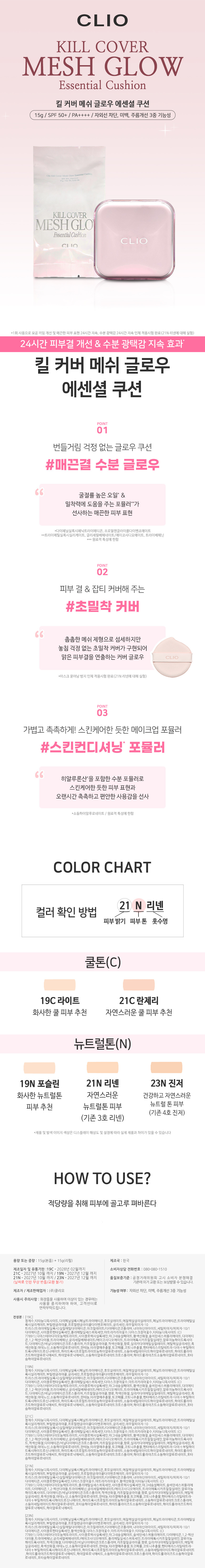 클리오 킬 커버 메쉬 글로우 에센셜 쿠션(본품+리필)