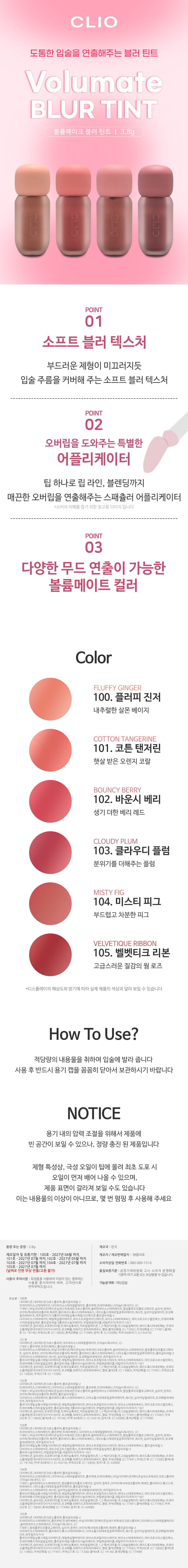 클리오 볼륨메이트 블러 틴트 3.8g