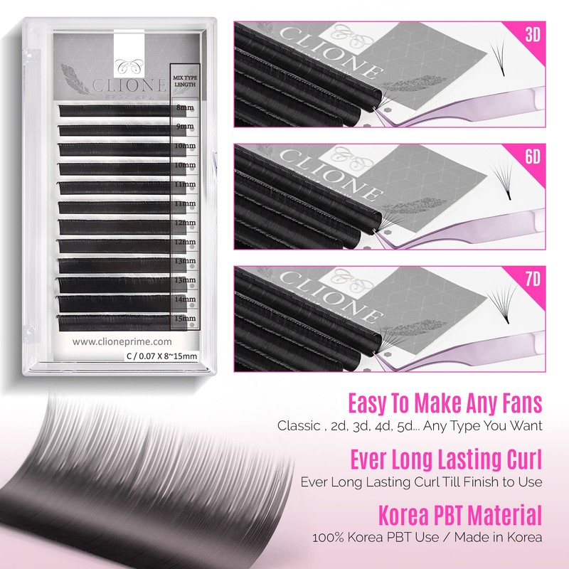 CLIONE PRIME Lash Extension Lashes - 0.07 C Curl Lash Extensions 8-15 mm Mixed Length Eyelash Extensions Mega Volume Lash Extensions Classic Eyelash Extension Pestañas Pelo a Pelo Profesional