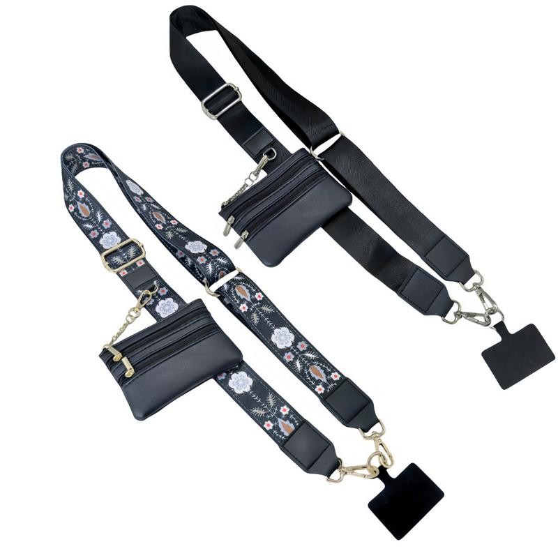Clip and Go Strap For Phone With Wallet Crossbody, Phone Strap With Wallet, Phone Strap Crossbody With Zipper Pouch Wallet, Phone Wallet, And Cell Phone Holder Badge Accessories Smartphone - Colour: Black+Flower print