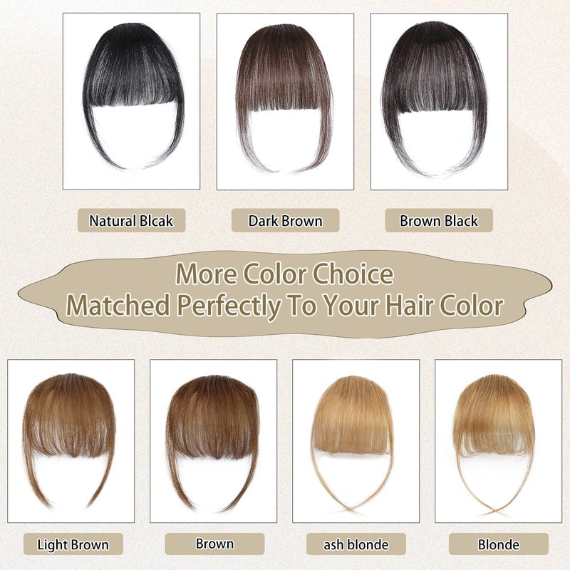 Clip in Bangs 100% Human Hair Fake Bangs Clip in Hair Extensions Light Brown Air Bangs Fringe With Temples Hairpieces for Women Curved Bangs for Daily Wear