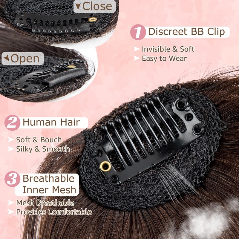 - Easy to Wear : Clip-in bangs design, super intuitive and simple, change a new hairstyle in 30 seconds. Clips are secure and undetectable even on your thin front hairline.