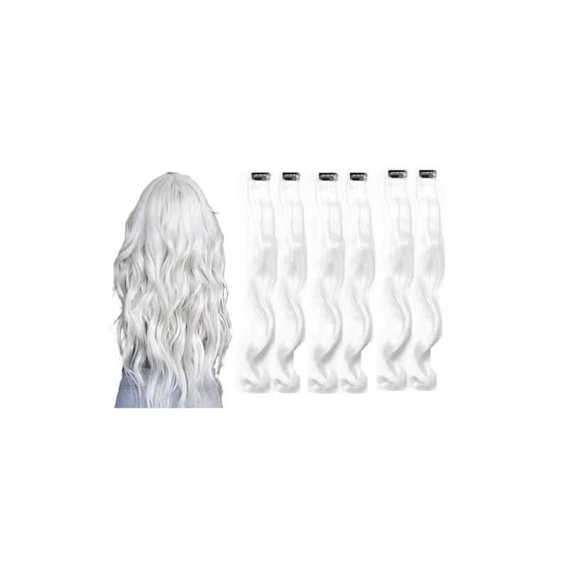 Clip-In Hair Extension Highlights Streaks x 6 (6 X WHITE)