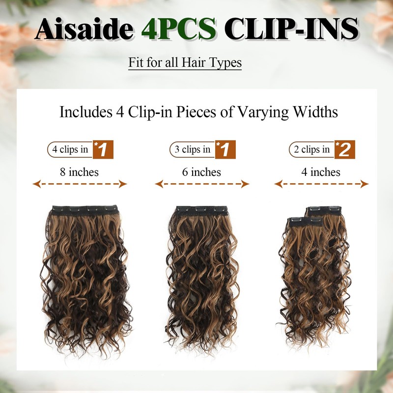 - [Suitable for all Occasions] :Aisaide 4PCS 16 inch Curly Hair Extensions clip ins are for holiday party, wedding, cosplay, photo-shoot, graduation, and daily use.