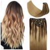 Clip In Hair Extensions Double Weft 120g 7pcs Medium Brown Mixed with Golden Brown and Strawberry Blonde Highlighted Full Head Silky Straight 100% Human Hair Clip In Hair Extensions for Women 20in