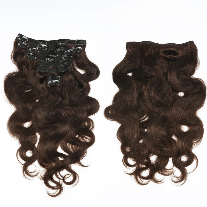 Clip in Hair Extensions Human Hair 18 Inch Human Hair Extensions for Women Double Weft Seamless Brazilian Body Wave 8 Pieces 120g 20 Clips Dark Brown