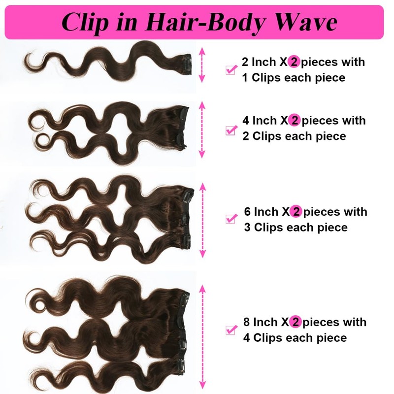 - Clip in hair extensions material: 100% virgin Brazilian human hair from young girls. No tangling or shedding, soft like natural hair, odorless, delicate texture, healthy tips, silky and shiny.