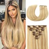 Clip in Hair Extensions Real Human Hair for Women Highlight Straight Silky Human Hair Extensions 100% Unprocessed Brazilian Remy Human Hair Full Head 7 Pcs with 16 Clips (12 Inch, 18p613)