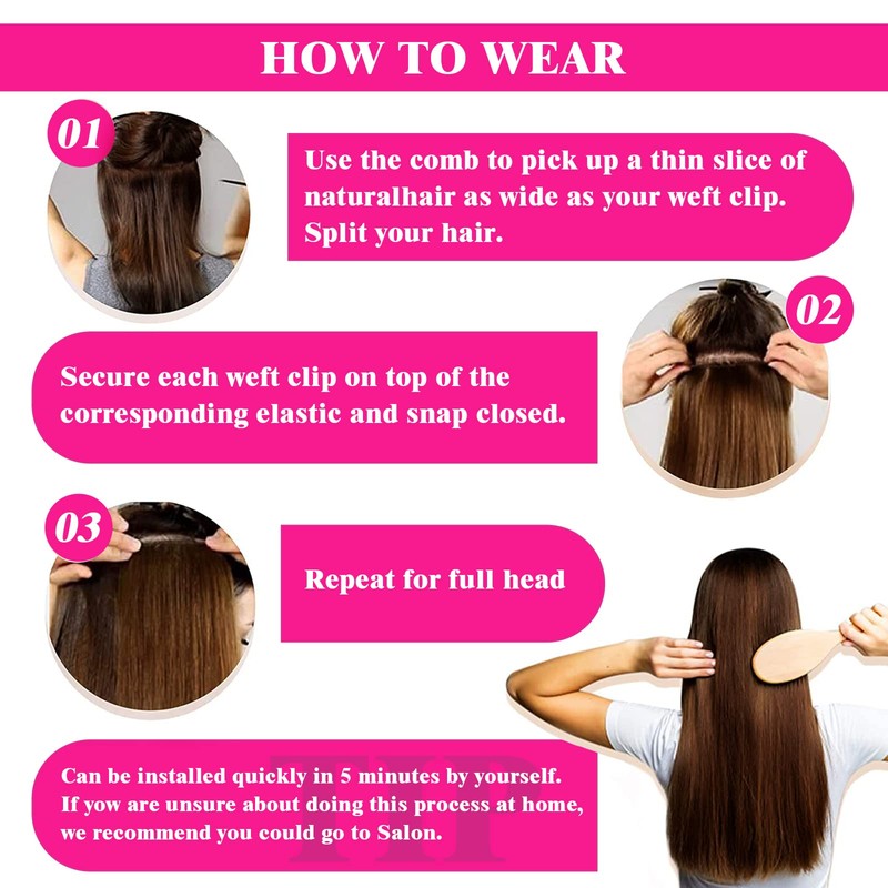 - COMFORTABLE AND REALISTIC: The fastest way to get hair extensions. The clip color changes according to the hair color, which makes it easier to be invisible. The clip selects the minimum size and holds firmly after wearing. It can be easily taken off without hurting your hair.