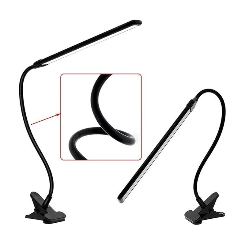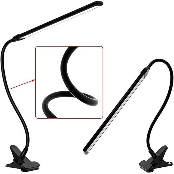Clip on Desk Lamp LED Reading Night Light USB Clamp Work Adjustable Flexible 4000K (Black)