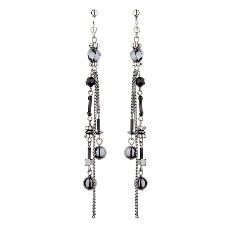 Clip On Earrings - Silver Plated Dangle Earring With Long Chains - Dakini