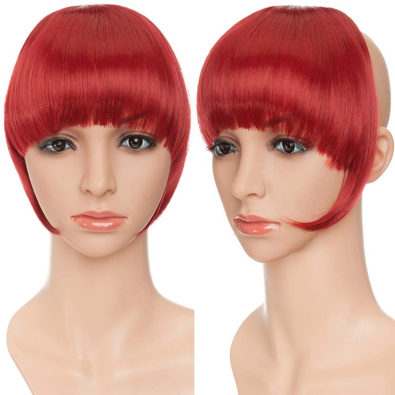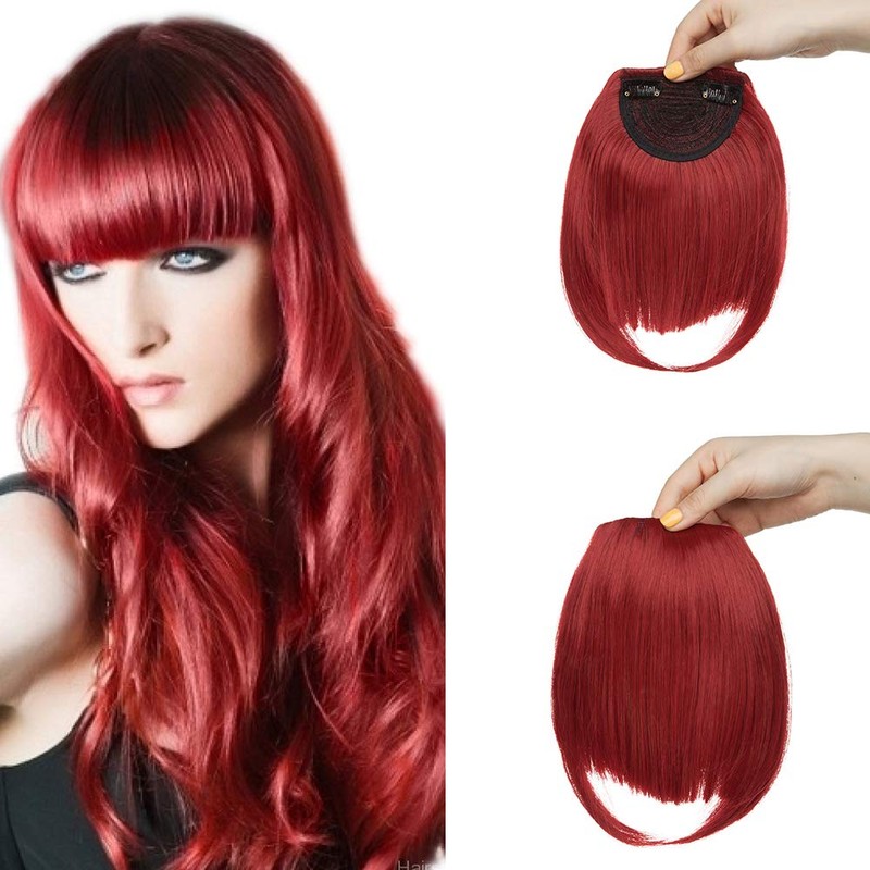 Clip On Front Fringe Hair Piece Clip In Bangs Fringe Cute Hair Extensions Straight Hairpieces Invisible - Dark Red