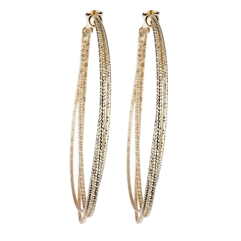 Clip On Hoop Earrings - Gold Plated With Three Hoops - Delta
