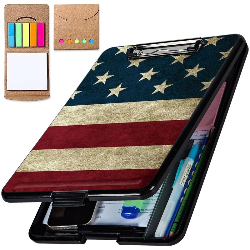 Clipboard with Storage Featuring American Flag Top-Bottom Flip Open Design Comprehensive Storage Solution for Office Essentials – Ideal for Nursing and Professional Use, 9.5x14.2 in
