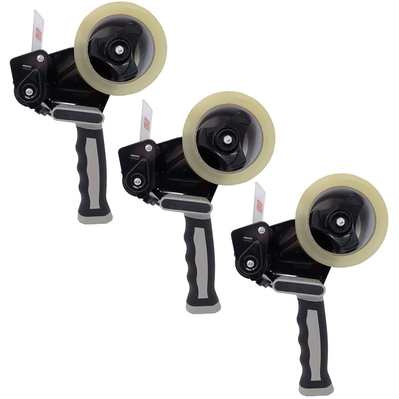 Clipco Clipco Tape Dispenser Gun with Packing Tape Included and Rubberized Handle (Pack of 3) (Black-Gray)